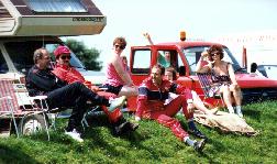 relaxing between races at Sugworthy on a very hot, sunny day in June 1992.